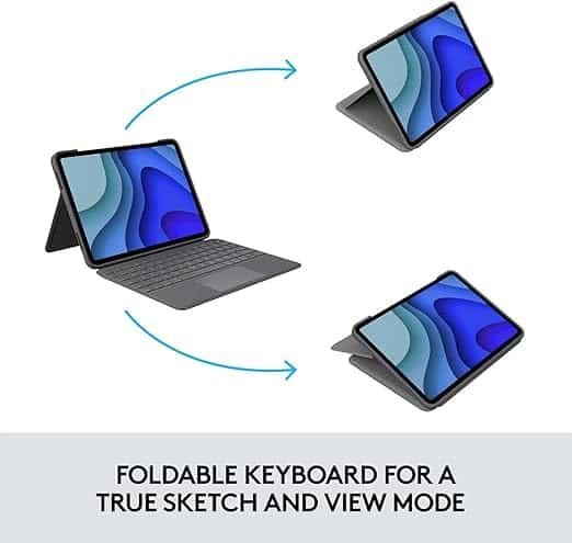The Logitech Folio Touch Keyboard Case also offers you four use modes to suit your needs. You can choose from type, sketch, view, and read modes to get things done on your iPad Pro. The kickstand has a 40 degree range of angles and the keyboard is foldable, so you can have a true view and sketch mode with nothing in the way.